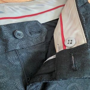 Slightly embroidered pattern throughout pant. Straight leg.