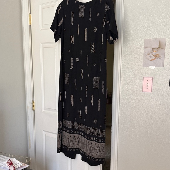 Elegant black maxi dress with unique patterns. Perfect for any occasion.
