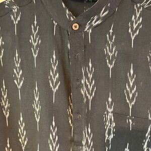 Stylish black shirt 3/4 yoke with a unique pattern. Perfect for casual or formal occasions. Worn once for a Indian friends home party.