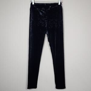 Elevate your wardrobe with these chic black velvet leggings. Floral velvet burnout design.