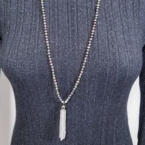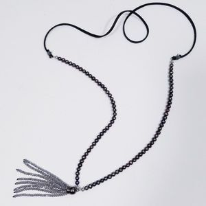 Black Peacock Freshwater Pearl & Suede Necklace with Crystal tassel