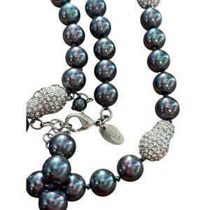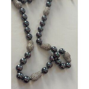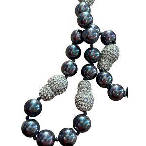 Black Pearl & Rhinestone Long Beaded Necklace 40" Hand-Knotted Elegant Jewelry