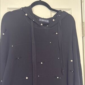 Stylish black hoodie with pearl embellishments. Perfect for a chic casual look. Size small but runs big