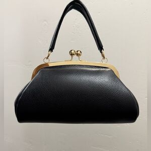 Black Pebble Cowhide Handmade Vintage Style Kisslock Handbag with 3 Strap Styles