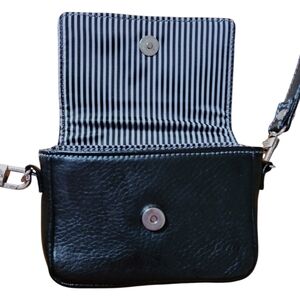 Sleek and stylish black pebbled leather crossbody bag. Perfect for any occasion, offering both elegance and functionality.