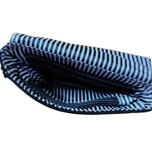 3 interior pockets, card holders, one zippered pocket, an additional slip pocket on back