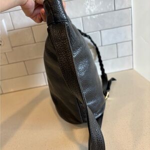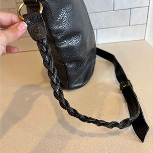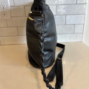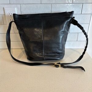 Black Pebbled Leather Bucket Bag Braided Strap Adjustable Shoulder Crossbody