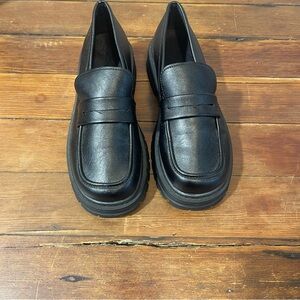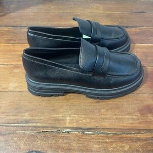 These black penny loafers feature a timeless slip-on design with a polished finish, perfect for both business and casual settings. The traditional moccasin-style toe and dark sole add to their classic appeal, ensuring comfort and style in every step.