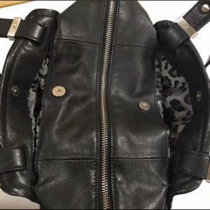 Compartments: 2 small on front zipper, one on each side of bag magnet, 1 inside zipper, 1 cell phone, and 1 square