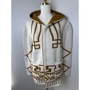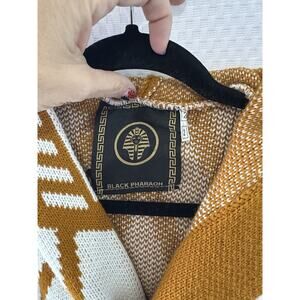 Black Pharaoh Aztec Knit Unisex Cardigan Zipper Sweater Grandpa Medium 2