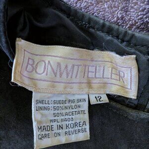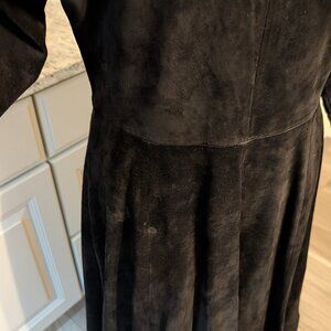 Black Pig Suede Dress Maxi, Long Sleeves, Vintage, Sz 12, Bonwit Teller Designer