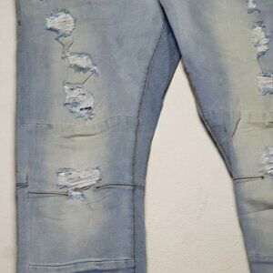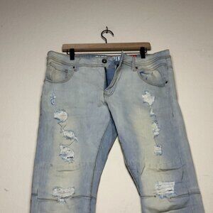 Black Pike Streetwear Distressed Slim Denim Jeans Pant Men 38x32 Light Blue Wash
