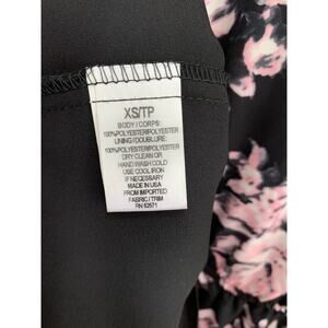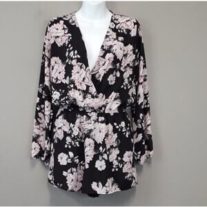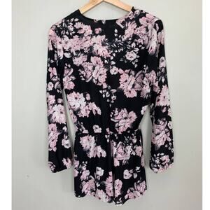 RED Saks Fifth Avenue Black Pink Floral Romper Long Sleeve Surplice XS Extra Small