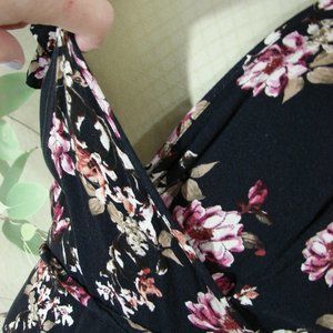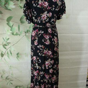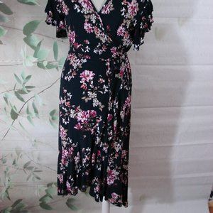 Black Pink Floral Ruffle Wrap Dress Chelsea & Violet Large Cottagecore Romantic