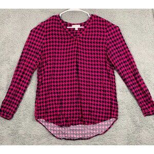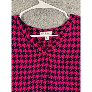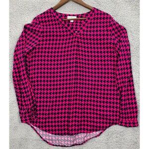 Black Pink Houndstooth Kim Rogers Medium (M) Long Adjustable Sleeve Top Blouse
