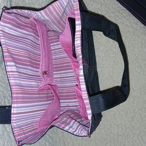 Small tote set. Black and Pink bag with pink interior and pockets. Comes with change purse, Address book and notepad with calculator set to match bag! New without tags. Great condition. Super cute!