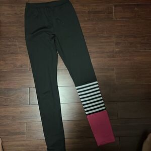 Black Pink & White Striped Spandex Legging - Size Small - Excellent Condition