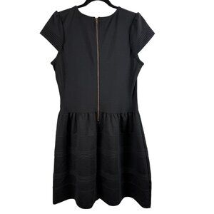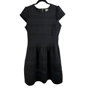 Black Pintucked Ponte Dress Fit and Flare Short Sleeve Anthropologie-12