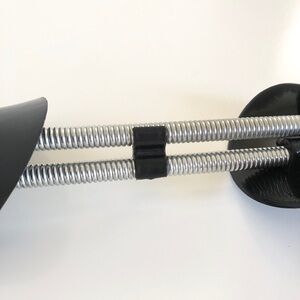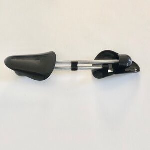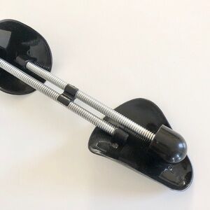 Plastic Spring Shoe Tree Stretcher. Women’s or could be unisex. Should fit up to size 9 women’s, possibly 10 (see measurement photos). Black color. Sold as a pair for both shoes. Flexible springs to fit shoe. Clips on each other to keep together and stay organized. Thin tops, solid plastic, but firm enough to mold shoe. Brand new in plastic. Shoe trees may have minor markings due to storage.