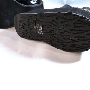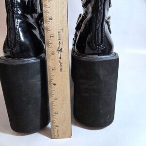 Elevate your style with these striking shiny black platform boots. Featuring multiple buckle straps, these boots offer a bold and edgy look. Perfect goth wardrobe staple. witchy, Demonia,