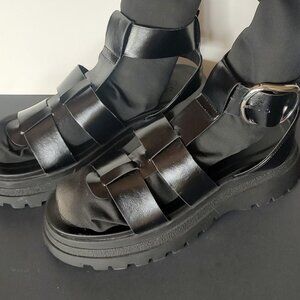 Black Platform Buckle Sandals Fisherman Chunky Goth Dominatrix ASOS size 10