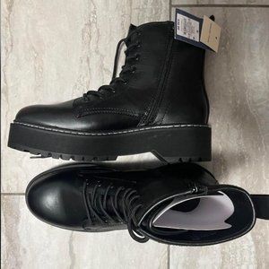 Black Platform Combat Boot Target, 9.5