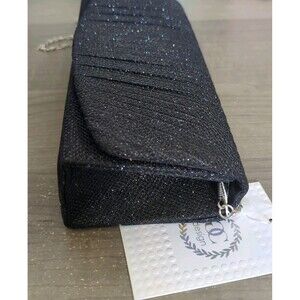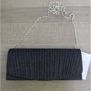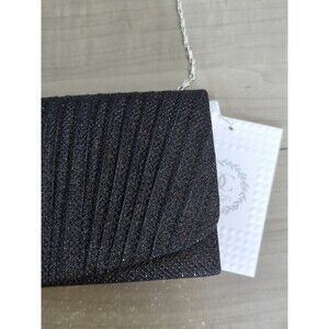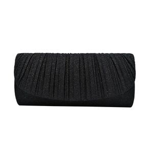 Black Pleated Glitter Flap Clutch Evening Bag Handbag Quilted Crossbody Purse