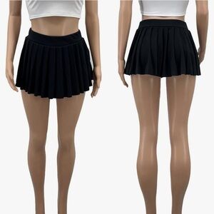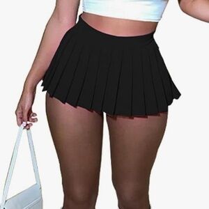 Stylish black pleated mini skirt. Perfect for a chic look.