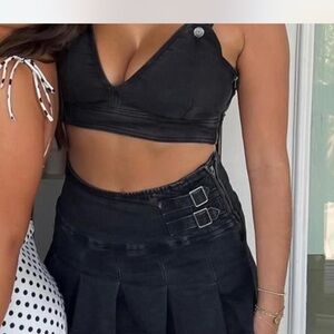 Two Piece Black Denim Set - Worn once for a gameday, iamgia dupe, so cute and has built in shorts. (not i am gia). Both parts are a medium.