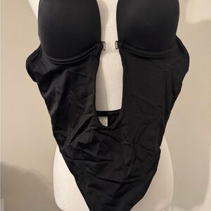 This sleek black bra features a plunging neckline and a form-fitting silhouette, offering both style and support. Perfect for special occasions, it combines elegance with comfort, making it an essential piece in your intimate wear collection.