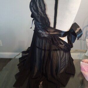 Black Plus Size Womens Halter Style V Neck Baby Doll Set