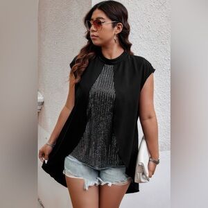 Black Plus size asymmetrical hem sparkly patchwork shirt women’s