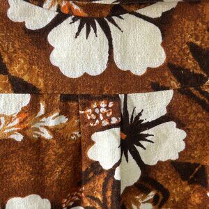 Vintage brown floral barkcloth sleeveless ruffle trim top