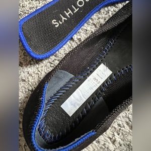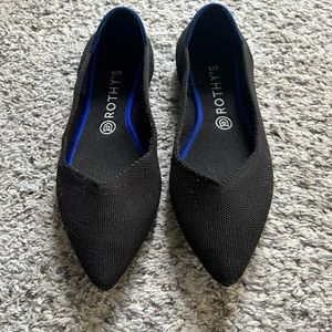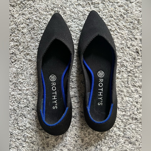 The classic shoe - black point Rothy’s! Goes with everything and being able to throw them in the washer is so convenient. The inside label has worn down a little from washes but the show has absolutely no flaws. FYI: 9.5 size on a point shoe means it’s best for a normal size 9 wearer. :)