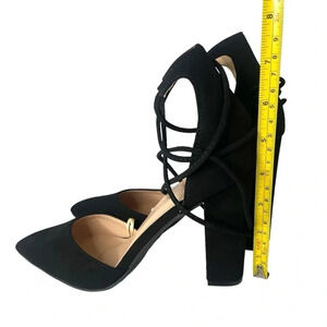 Black Pointy Toe High Heels with Crisscross Ankle Straps - 4 Inch Heel- Forever