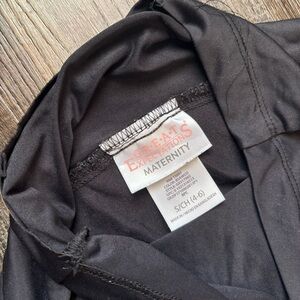 Stylish black maternity leggings with white polka dots. Comfortable and stretchy design.