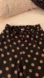 Stylish black pants with tan polka dots and a bow detail. Lined but flowy wide leg pants