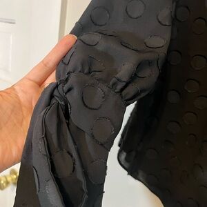Black Polka Dot Sheer long sleeve with bow sleeves top - Size Small Petite