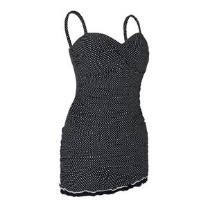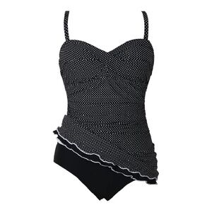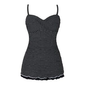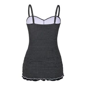 Black Polka Dot Swimsuit 1 Pc Pinup Tummy Control Ruffle Retro Swimdress Plus 18