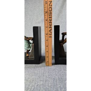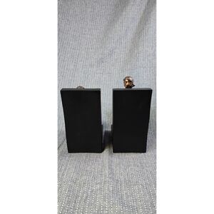 Both pieces are structurally sound with no cracks or chips. The black polystone finish shows minimal wear consistent with gentle use, preserving their sleek modern look. Ready to display and fully functional as decorative book supports.Be sure to zoom in on the photos because my opinion of a minor wear may not be the same as yours, although I do mention anything that visibly stands out or causes an item not to function properly.