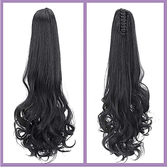 Black Pony Tail Hair Claw Hair Extension Piece 22”