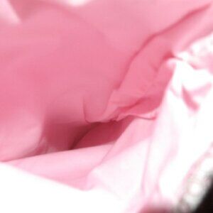 Crafted from cotton fabric, and it is fully lined with pink cotton fabric, and it has a pink cord for hanging.