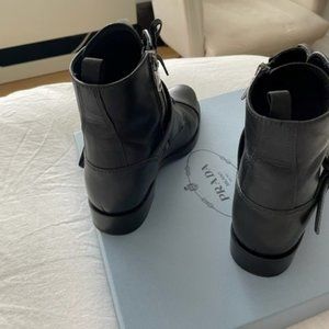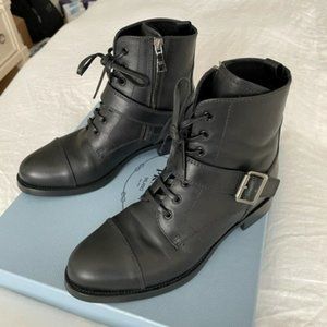 Black Prada Combat Boots (Size 38.5); leather; good condition with some creasing; minimally worn.