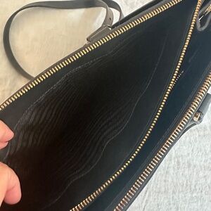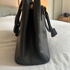 Effortlessly chic and classic black Prada Medium Galleria Saffiano Bag in good to very good condition - rarely used but with light scuffing on the exterior corner, some rubbing and scuffs on the gold hardware and some stains on the interior (see photos for accurate description of the bag).