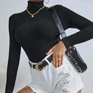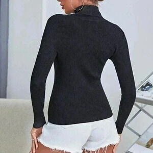 Black Preppy High Neck turtleneck Rib Knit Sweater top
