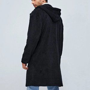 Black Preppy Hooded Flannel Men's Duffle Coat