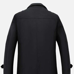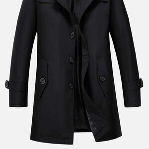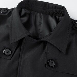 Black Preppy Mens Slant Pockets Button Up Trench Coat