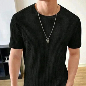 Black Preppy Mens Solid Waffle Knit Tee