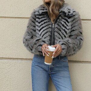 Black Preppy Women's Faux Fur Bomber Jacket