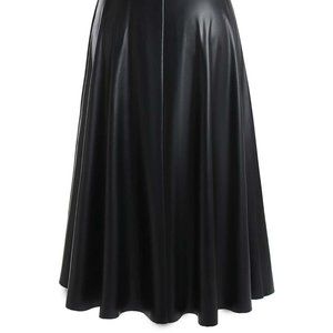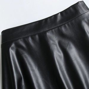 Black Preppy Womens Plus Solid PU Leather Flare Skirt